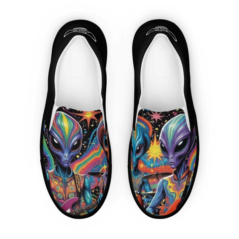 Four figures appear engaged in a shared performance, each contributing to a broader pattern of rhythm, color, and sustained frequency.